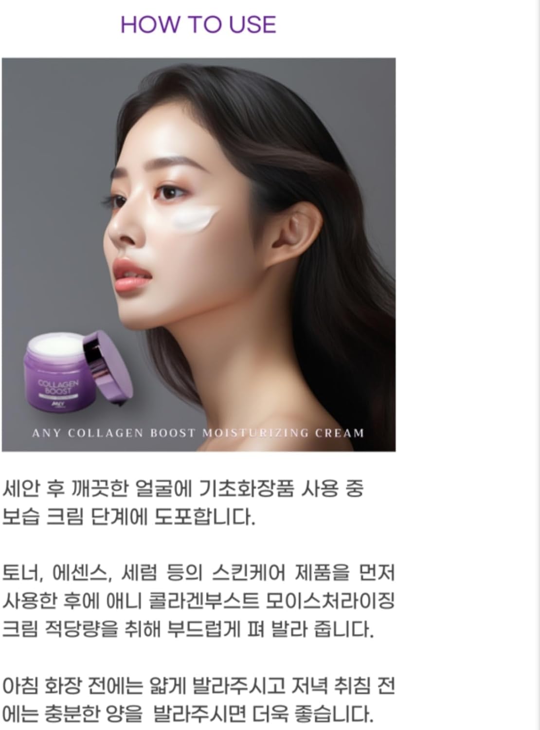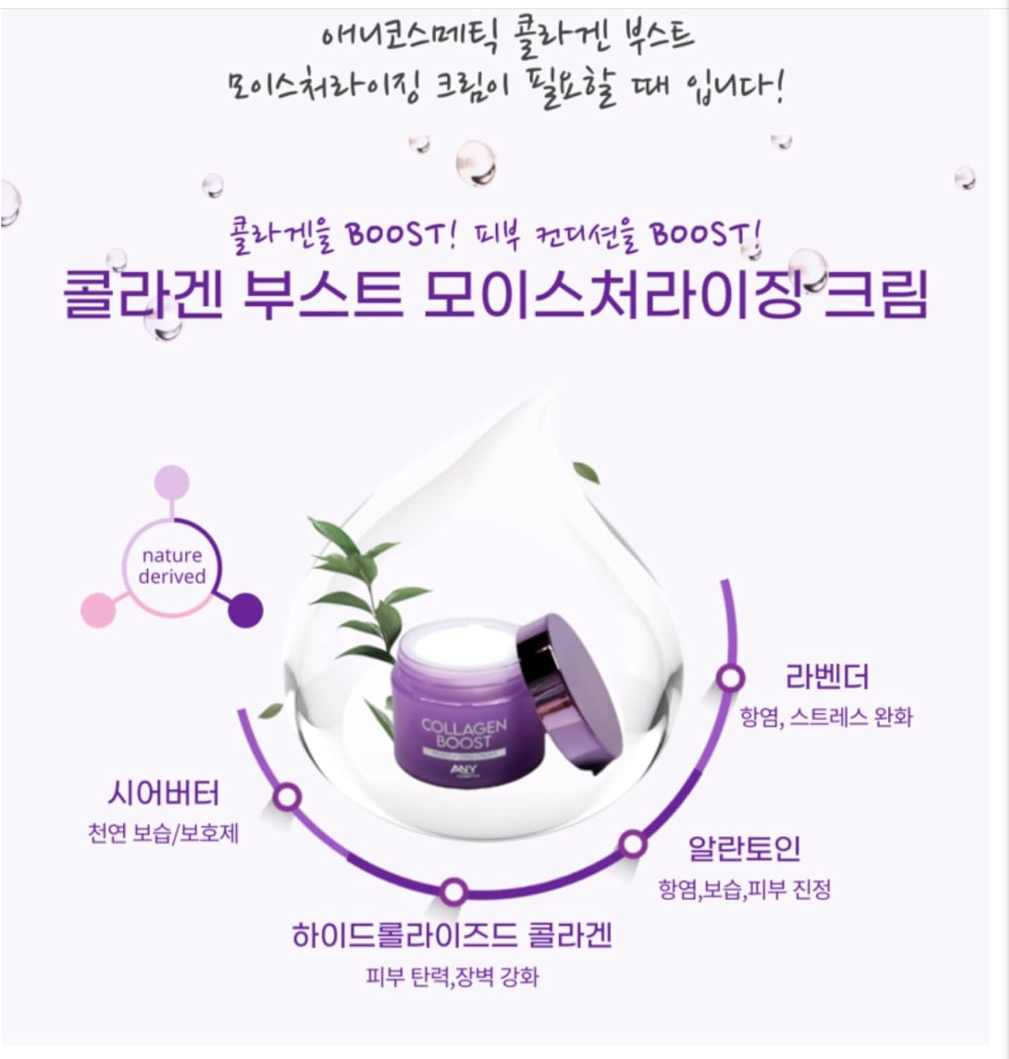 • “ANY” collagen boost moisturizing cream strengthens, firms and restructures