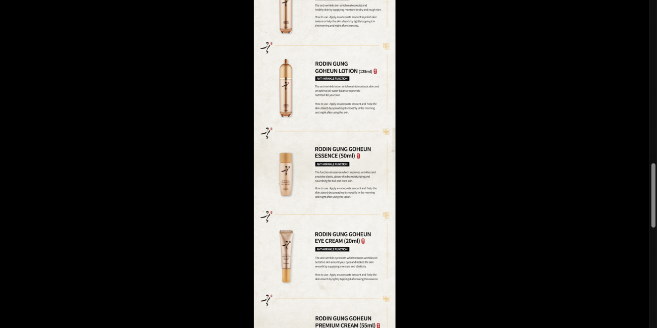 -Feel the noble and amazing power from the special ingredient of GUNG RODIN, a prestigious herbal ingredient obtained from nature, delivered to your skin, it is a high quality wrinkle-improving herbal premium set selected and prescribed carefully with prestigious oriental ingredients.